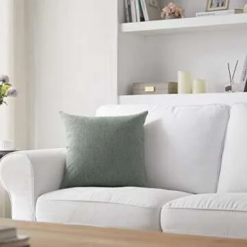 Meekio Set of 2 Grey Green Pillow Covers 18 x 18 Inch Farmhouse Boho Decorative Throw Pillow Covers Linen Cushion Covers for Sofa Couch Décor
