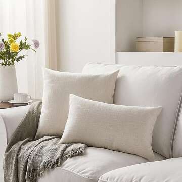 Meekio Set of 2 Ivory Pillow Covers 20 x 20 Inch Farmhouse Boho Decorative Throw Pillow Covers Linen Cushion Covers for Sofa Couch Décor