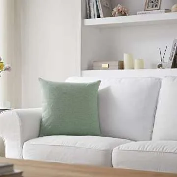 Meekio Set of 2 Sage Green Pillow Covers 18 x 18 Inch Farmhouse Boho Decorative Throw Pillow Covers Linen Cushion Covers for Sofa Couch Décor