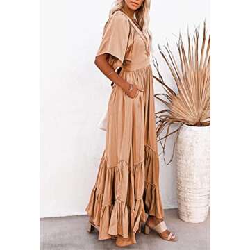 Show moreIntroducing the stunning Meenew Women Plunge V Neck Long Flowy Dress, specially crafted for the modern woman who exudes style and confidence. This captivating piece features a chic plunge V neck design that enhances the neckline while providing an elegant silhouette. Perfect for both beach days and casual outings, this high-waisted maxi dress flows beautifully with your every move. The vibrant orange color adds a pop of sunshine to your wardrobe, making it not only a dress but an expression of joy and summer vibes.