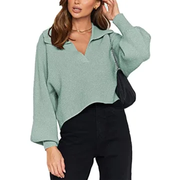 Show moreStep out in style with the Meenew Women's Lantern Sleeve Ribbed Knit Pullover V Neck Cropped Sweater Top. This chic and cozy piece brings together comfort and sophistication, making it the perfect addition to any wardrobe. The soft, warm fabric envelops you in a gentle embrace, providing a delightful wearing experience that you'll want to enjoy all day long. Featuring a unique lantern sleeve design and a fashionable polo collar, this cropped sweater is both trendy and versatile, suitable for any casual occasion. Available in a vibrant green, it’s a color that captivates and flatters, ensuring you stand out wherever you go.