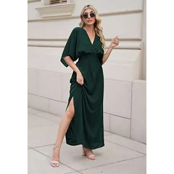 Meenew Women Summer Boho Long Dress Empire Waist High Slit Chiffon Maxi Dress S