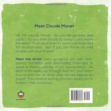 Show moreIntroducing the stunningly illustrated book, Meet the Artist, an enchanting journey into the world of art that will captivate both young and old. This book serves as a gateway to discovering the intricacies of art through the eyes of famous artists like Monet, allowing readers to experience their masterpieces in an entirely new light.