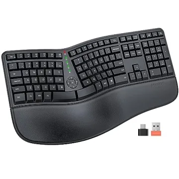 Show moreThe MEETION Ergonomic Keyboard is a thoughtfully designed split wireless keyboard, engineered to elevate your typing experience to new heights of comfort and productivity. With its unique curved and split-key design, this keyboard adheres to a standard full-size layout, ensuring a natural typing position that reduces wrist strain and discomfort. The 2023 New Upgrade Director-W model not only looks sleek in a classic black finish but also includes advanced functionalities that cater to both casual and professional users alike. You will love typing on this keyboard, because it combines ergonomics with modern technology, making it a perfect fit for any workspace.