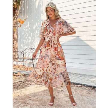 Show moreIntroducing the **Meetrendi Women Summer Loose Boho V Neck Short Sleeve Floral Long Flowy Maxi Beach Wedding Guest Spring Dresses 2025**, the epitome of elegance and comfort. Designed with a vibrant floral print, this midi dress is perfect for women who want to showcase their feminine charm. With its lightweight and flowing chiffon fabric, you’ll feel like you’re walking on air while enjoying the sunny outdoors or dancing at a summer wedding. The lining extends to mid-thigh, ensuring full opacity so you can move with confidence and ease.