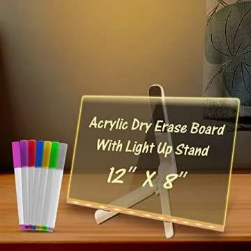 MEETULED Acrylic Dry Erase White Board with Light Up Stand for Interactive Art