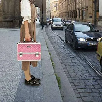 mefeir Makeup Train Case, Cosmetic Box Portable Makeup Box 12.6" L w/Adjustable Dividers, 4 Trays and 2 Locks, Professional Makeup Case Organizer, Xmas New year Birthday Mother's Day Gift (Pink)