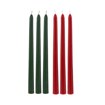 6 pcs Unscented Festive Green and Red Taper Candles.