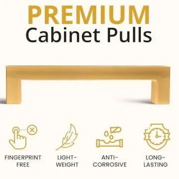 Mega Handles 12 Pack I Cabinet Pulls 5.5 Inch, Stainless Steel Cabinet Handle Pulls I Ideal for Kitchen Drawer, Cabinets, Door, Cupboard I Hardware for Cabinets - Hole Distance 5 Inch - Satin Brass
