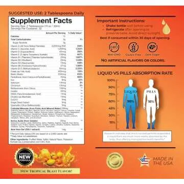 Mega Premium Liquid Multivitamin | Natural Immune Support Vitamin w/ 1333% Vitamin C, 200% D3, Zinc + 20 Vitamins, 70 Minerals, & 21 Amino Acids | Sugar Free | Orange Flavor | 98% Absorption | 32 Serv
