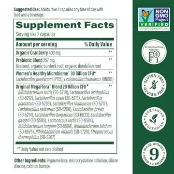 MegaFood MegaFlora Probiotics for Women + Prebiotics and Probiotics with 14 Strains & 50 Billion CFUs, with Cranberry, Probiotics for Women Digestive Health, Vegetarian - 90 Capsules (45 Servings)