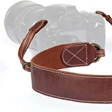 Show moreIntroducing the MegaGear MG1515 Sierra Series, a premium Genuine Leather Camera Shoulder or Neck Strap crafted to combine style, comfort, and functionality. This strap, crafted from high-quality brown leather, not only enhances the aesthetic appeal of your camera but also ensures durability and reliability. Every aspect of the strap, from the leather quality to the sturdy hardware, has been carefully selected to ensure an exceptional product experience. The smooth texture and sophisticated design make it perfect for both professional photographers and hobbyists alike. It is designed to fit seamlessly with various camera models, providing a snug, secure fit that guarantees the safety of your equipment. With its thoughtful design, including extra padding on certain parts for additional comfort, the MegaGear Sierra Series strap transforms carrying your camera into a more enjoyable experience. Its retro-inspired look matches perfectly with both modern and classic camera styles, making it a versatile choice for anyone looking to upgrade their camera gear.