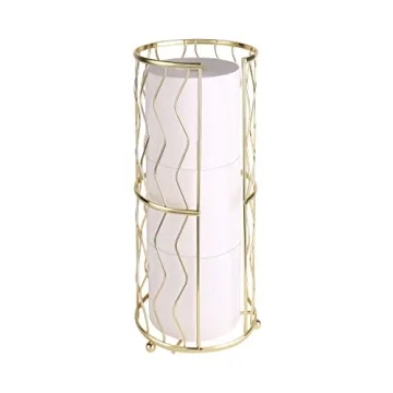 Megier Decorative Metal Standing Toilet Tissue Holder for Bathroom - Compact Design for 3 Rolls, Gold Finish