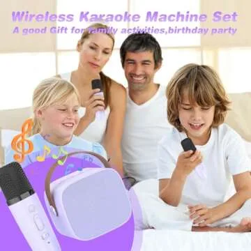Show more Introducing the MEGUO Mini Karaoke Machine - a perfect blend of fun and functionality for kids and adults alike! This vibrant purple karaoke set features everything you need to create memorable music moments, whether it's a birthday party, festive holiday gathering, or just a casual day at home. Designed with the young and the young-at-heart in mind, this device ensures hours of entertainment with its magic voice-changing functions that transform your voice into a goddess, uncle, monster, or baby sound, captivating the imagination of children aged 4 to 15. Lightweight and compact, the microphone is perfectly sized for little hands, making it easy for everyone to join in the fun!