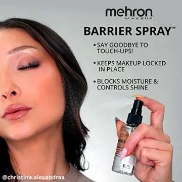 The Mehron Makeup Barrier Spray is ideal for a variety of special occasions where makeup longevity is critical. This spray is specially formulated to withstand heat from stage lights during performances and keep your bridal makeup intact through emotional ceremonies and celebrations. Additionally, it is perfect for long, fun-filled days at conventions or outdoor summer festivities where you need your makeup to stay flawless despite changes in temperature and humidity.