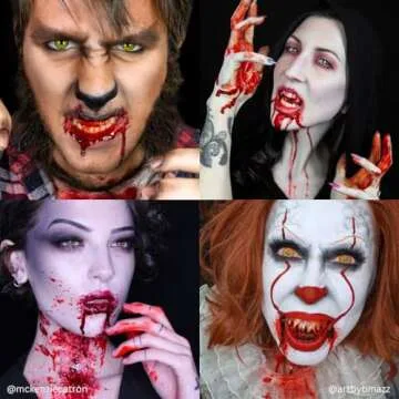 The realistic, honey-like consistency and deep blood-red color closely resemble real blood, elevating your makeup game to new heights. Apply it to your skin or over prosthetics; the blood will continue to drip and shimmer as intended. You can even use it in conjunction with blood capsules for dramatic bleeding effects. Please note that pre-testing is recommended, as this product may stain fabrics if not handled carefully.