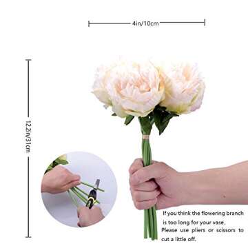 MEIBEL silk plastic peony flowers 5 Heads white Artificial Fake Flowers Bouquet desk plant for office decor