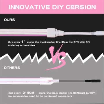 When compared to traditional neon lights, the Meijiajia LED Neon Strip Lights stand out due to their enhanced brightness, flexibility, and durability. Unlike brittle glass neon, the silicone housing is invulnerable to breakage, significantly extending the lifespan of your investment. Furthermore, the flexibility and cuttable capabilities empower users to create custom shapes that standard neon signage cannot offer. When stacked against standard LED strips, they provide a uniquely vibrant neon glow that adds artistic flair while maintaining the advantages of energy-efficient lighting.