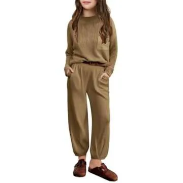 Meikulo Girls 2 Piece Lounge Set – Cozy Knit Sweater & Pants for Ages 5-14