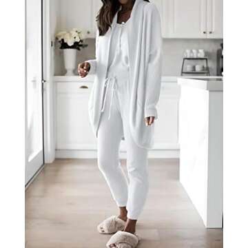 Meikulo Lounge Sets for Women Pajamas Set 3 Piece Outfits Waffle Knit Loungewear Sleeveless Henley Tank Top Vest Pajama Pants Joggers Sweatpants Long Sleeve Lightweight Cardigans White, Small