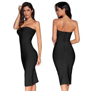 meilun Women's Rayon Strapless Below Knee Retro Bandage Bodycon Party Dress Black Large
