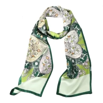 Luxurious MEISEE 100% Mulberry Silk Scarf for Women - 59"x6.3" Green Floral Design