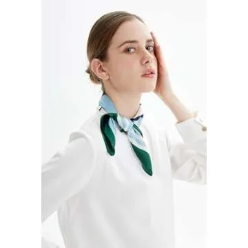 MEISEE Pure Natural Mulberry Silk Scarfs Women Small Square Scarf 21" x 21" Breathable Lightweight Neckerchief Printed Headscarf (Blue and white + green edge)