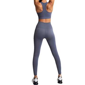 MEIVSO Women's 2 Piece Workout Outfits Sports Bra Seamless Leggings Yoga Gym Activewear Set Grey S