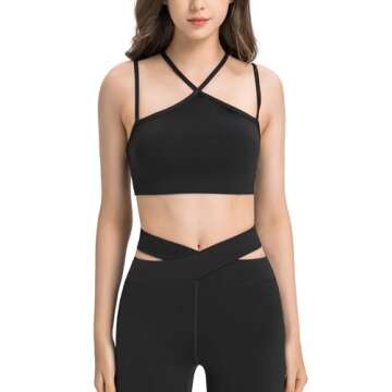 MEIVSO Women's Halter Sports Bra Spaghetti Thin Strap Padded Workout Yoga Y Back Bras Black XS