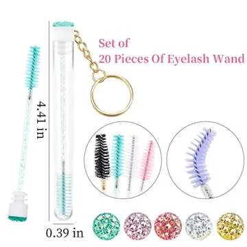 Mekupeu 20 Pcs Mascara Wand Tube Set Diamond Key Chain Tube Empty Mascara Brushes Eyelash Spoolies Brush Makeup Tool Applicator (Mixed 5 color)