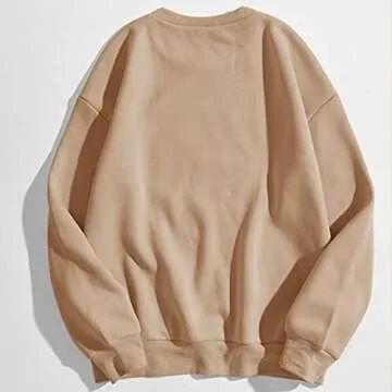 Meladyan Women Fleece Outer Banks Letter Graphic Print Oversized Sweatshirt Long Sleeve Crewneck Drop Shoulder Pullover Khaki