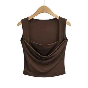 Meladyan Women Sexy Pleated Ruched Crop Tank Top Blue Square Neck Strappy Sleeve Cropped Vest Cami Shirt Clubwear