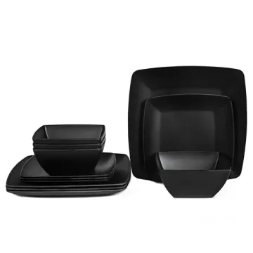 Melamine 12pcs Classic Square Dinnerware Set, Service for 4, Dishwasher Safe Black