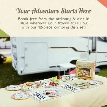 Melamine Plates & Bowls Set - 12-Piece Dish Set for Indoor & Outdoor Dining - BPA Free, Top Shelf Dishwasher Suitable Dinnerware Set - Sturdy Melamine Dinnerware Sets - Camping Dishes by Camp Casual