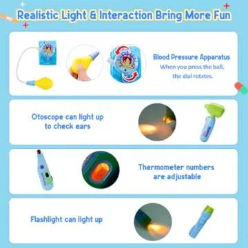 Show moreIntroduce your little ones to the fascinating world of pretend medicine with the Meland Doctor Kit for Toddlers. Designed specifically for ages 3 to 6 years, this comprehensive 32-piece doctor and dentist play set includes everything your child needs to dive into their role as a caring healthcare professional. With expertly crafted tools like a dental drill, oral mirror, thermometer, blood pressure cuff, and more, your child will be fully equipped to treat imaginary patients in a safe, engaging way. This kit merges fun with education, allowing children to explore fundamental concepts about health, hygiene, and empathy as they enact doctor-patient scenarios.