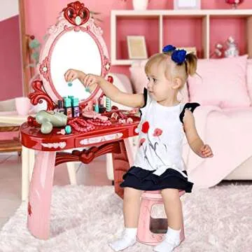 Meland Toddler Vanity Set - Kids Toy Vanity Table for Little Girls with Sound and Light Mirror and Beauty Accessories, Birthday Toys for Little Princess Pretend Play