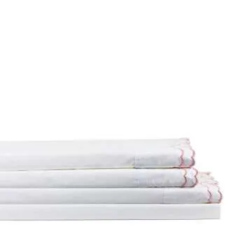 Melange Home Percale Cotton Double Scalloped Embroidered KG, King Duvet Set, Pink on White