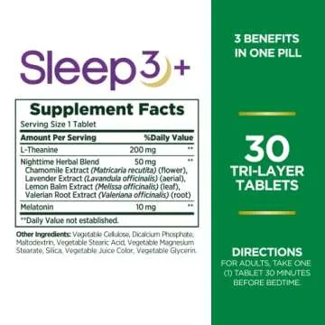 Melatonin by Nature's Bounty, Sleep3 Maximum Strength 100% Drug Free Sleep Aid, Dietary Supplement, L-Theanine & Nighttime Herbal Blend Time Release Technology, 10mg, 30 Tri-Layered Tablets