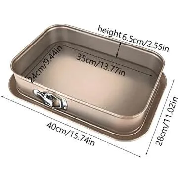 Show more Introducing the meleg otthon Springform Pan, a perfect companion for your baking adventures! This high-quality rectangular leakproof cake pan, measuring 15.7" x 11" x 2.6", is crafted from premium carbon steel material. Its exceptional heat absorption properties ensure fast and even heating, allowing your delicious cakes and breads to bake perfectly every time. Oven-safe up to 450 degrees Fahrenheit, this beautifully designed pan features a dark finish that not only enhances its aesthetic appeal but also ensures optimal baking performance.