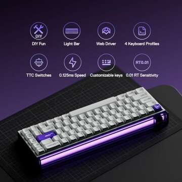 MelGeek MADE68 Pro Wired Keyboard, Hall Effect Magnetic Switch Gaming Keyboard, 65% Compact Rapid Trigger, Hot-Swappable, RGB Snap Tap & Adjustable Actuation, Online HIVE Custom (Purple)