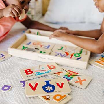 Melissa & Doug ABC Picture Boards - Educational Toy With 13 Double-Sided Wooden Boards and 52 Letters , White