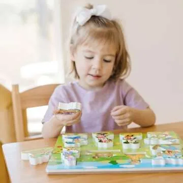 The sturdy wooden construction of the puzzle ensures durability, making it a long-lasting addition to any child's toy collection. Crafted by the renowned brand Melissa and Doug, this puzzle stands out not only for its quality and design but for being a valuable tool for hands-on, screen-free play. It encourages problem-solving skills and enhances fine motor skills as children fit the pieces together and see their favorite characters come to life.