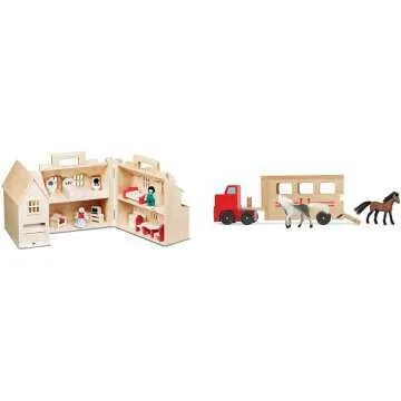 Melissa & Doug Fold & Go Wooden Dollhouse & Vehicle Play Set