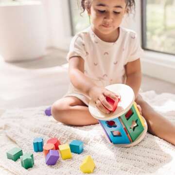 This toy helps develop color and shape recognition, sorting skills, problem-solving abilities, and manual dexterity.