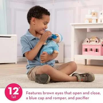 Show moreIntroducing the Melissa & Doug Mine to Love Jordan doll, an enchanting companion that your little ones will cherish for years to come! At just 12 inches in length, this delightful baby boy doll is tailored for toddlers aged 18 months and older, making it the perfect size for tiny hands to grasp and cuddle. With his light skin tone, striking brown eyes, and a cheerful expression, Jordan captures the essence of childhood innocence beautifully. One of the most engaging features of this doll is its ability to suck its thumb or pacifier, which wonderfully enriches the imaginative play experience.