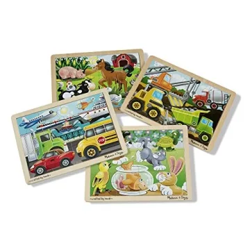 Melissa & Doug Wooden Jigsaw Puzzles Set: Vehicles, Pets, Construction, and Farm (4 puzzles)