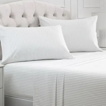 Mellanni King Sheets Set - 4 PC Iconic Collection Bed Sheets, Soft Cooling, Hotel Quality - Pin Stripe Gray