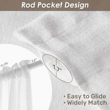 Melodieux White Semi Sheer Curtains 96 Inches Long for Living Room, Bedroom Faux Linen Texture Farmhouse Rod Pocket Shiny Sheer Curtains Drapes Light Filtering, 52" W x 96" L, 2 Panels