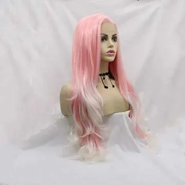 melody wig Baby Pink Wig Synthetic Pink Lace Front Wigs For Women Hair Long Blonde Tips Hair Heat Resistant Fiber Long Natural Straight Wigs Cosplay Part