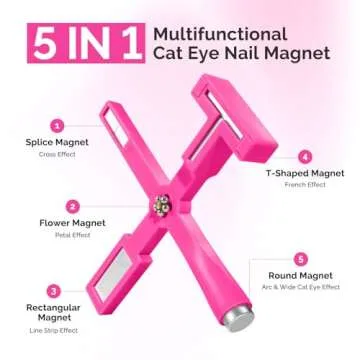 Show more Experience the magic of professional nail art with the Multifunctional Cat Eye Magnet, a revolutionary tool that transforms ordinary nails into stunning visual masterpieces. This incredible 5-in-1 nail polish magnet boasts 5 unique magnet heads, allowing you to explore various cat eye effects, from the chic French effect to the mesmerizing black hole design and beautiful floral patterns. Whether you're preparing for a special event or simply want to express your creativity, this nail magnet elevates your manicure game to the next level.